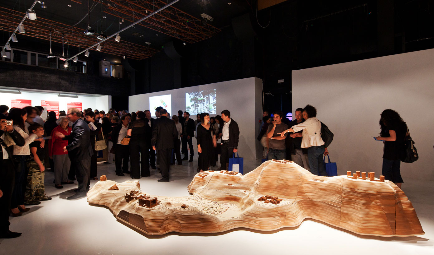 L’exposition présente une quarantaine de projets, de la maison à la ville, à la même échelle et sur un territoire continu. Dans une topographie imaginaire, nous avons voulu inscrire une mémoire tangible du travail de l’agence. Cette confrontation des projets fait apparaître l’exploration constante des échelles et des structures du territoire qui est au cœur de notre pratique. L’invraisemblable diversité des sites, des situations et des programmes sur lesquels l’agence travaille nous permet de confronter les territoires et d’y trouver de nouveaux modes d’intervention. Rechercher, décliner, pervertir et contourner les échelles devient notre stratégie de projet. Une forme de résistance à la standardisation de nos environnements, où la recherche de singularité ne se fait pas à travers la distinction formelle, mais par la volonté de s’inscrire dans une structure territoriale continue.