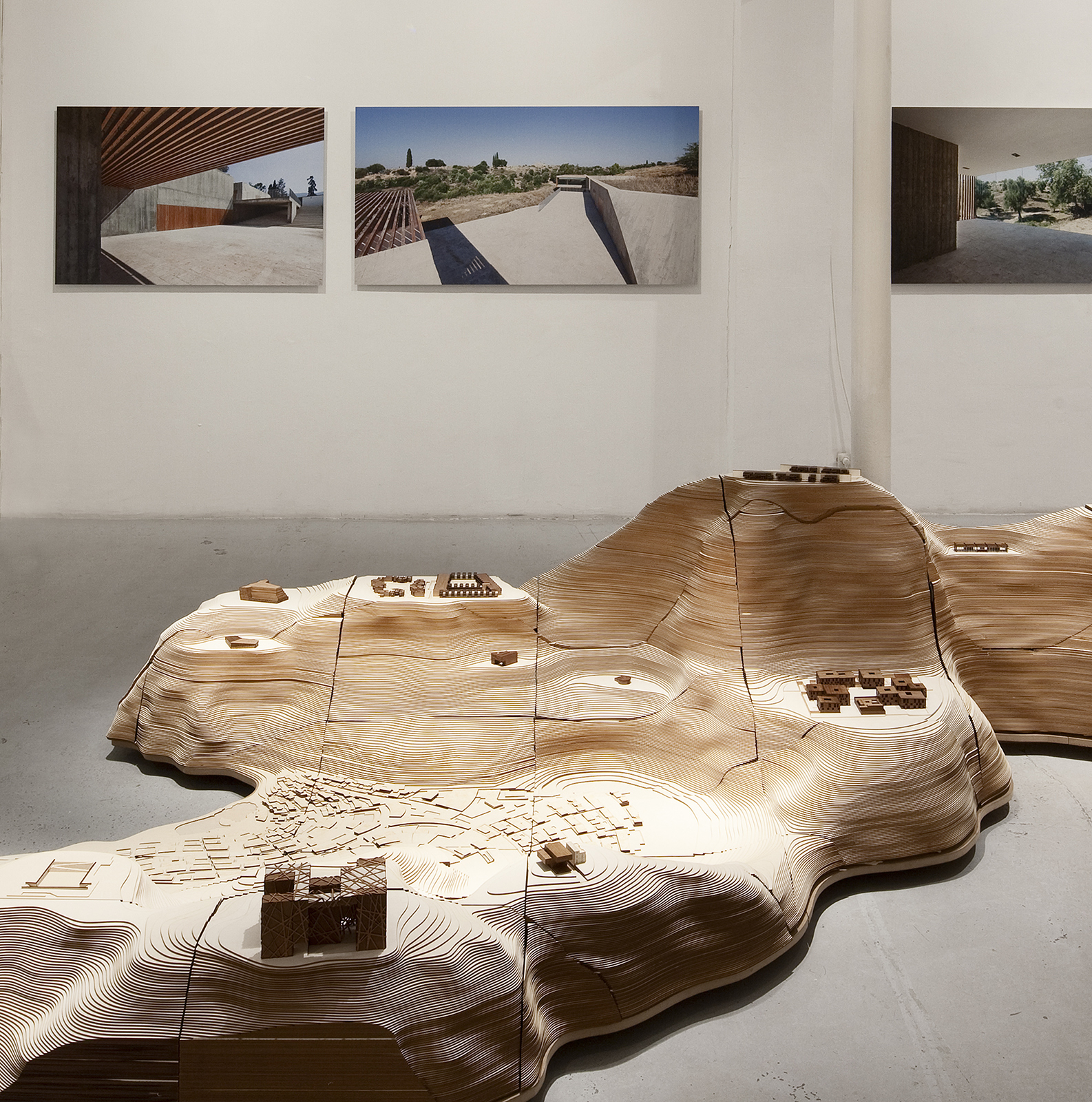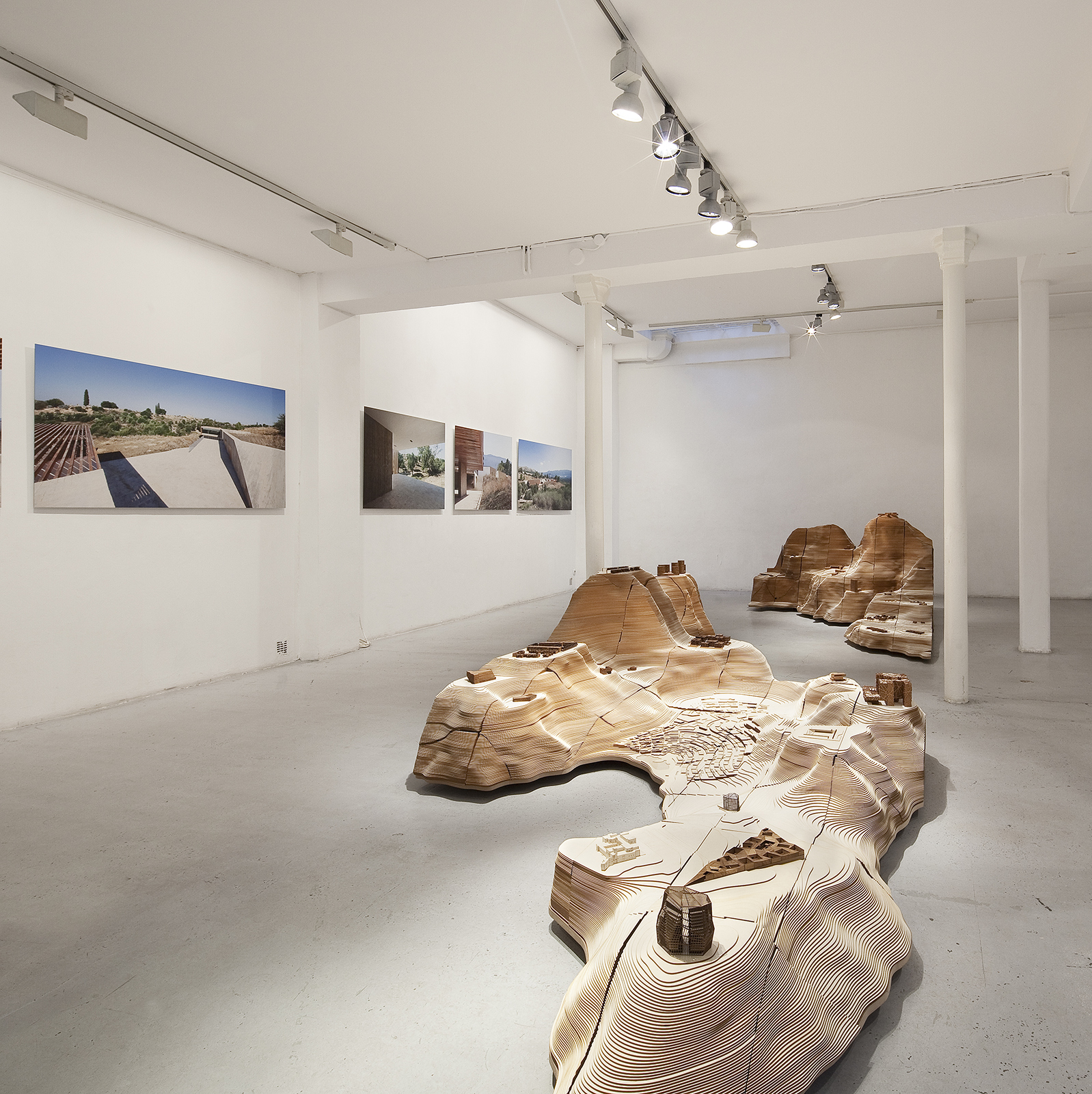 L’exposition présente une quarantaine de projets, de la maison à la ville, à la même échelle et sur un territoire continu. Dans une topographie imaginaire, nous avons voulu inscrire une mémoire tangible du travail de l’agence. Cette confrontation des projets fait apparaître l’exploration constante des échelles et des structures du territoire qui est au cœur de notre pratique. L’invraisemblable diversité des sites, des situations et des programmes sur lesquels l’agence travaille nous permet de confronter les territoires et d’y trouver de nouveaux modes d’intervention. Rechercher, décliner, pervertir et contourner les échelles devient notre stratégie de projet. Une forme de résistance à la standardisation de nos environnements, où la recherche de singularité ne se fait pas à travers la distinction formelle, mais par la volonté de s’inscrire dans une structure territoriale continue.