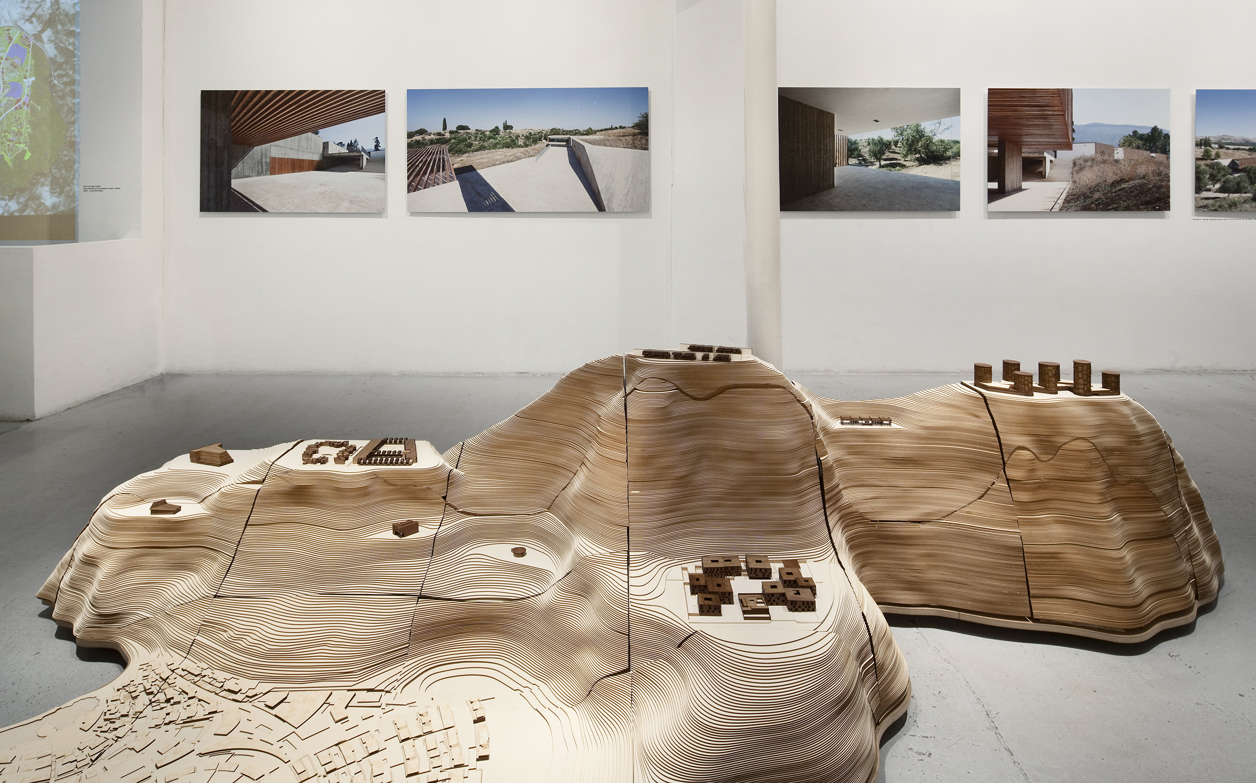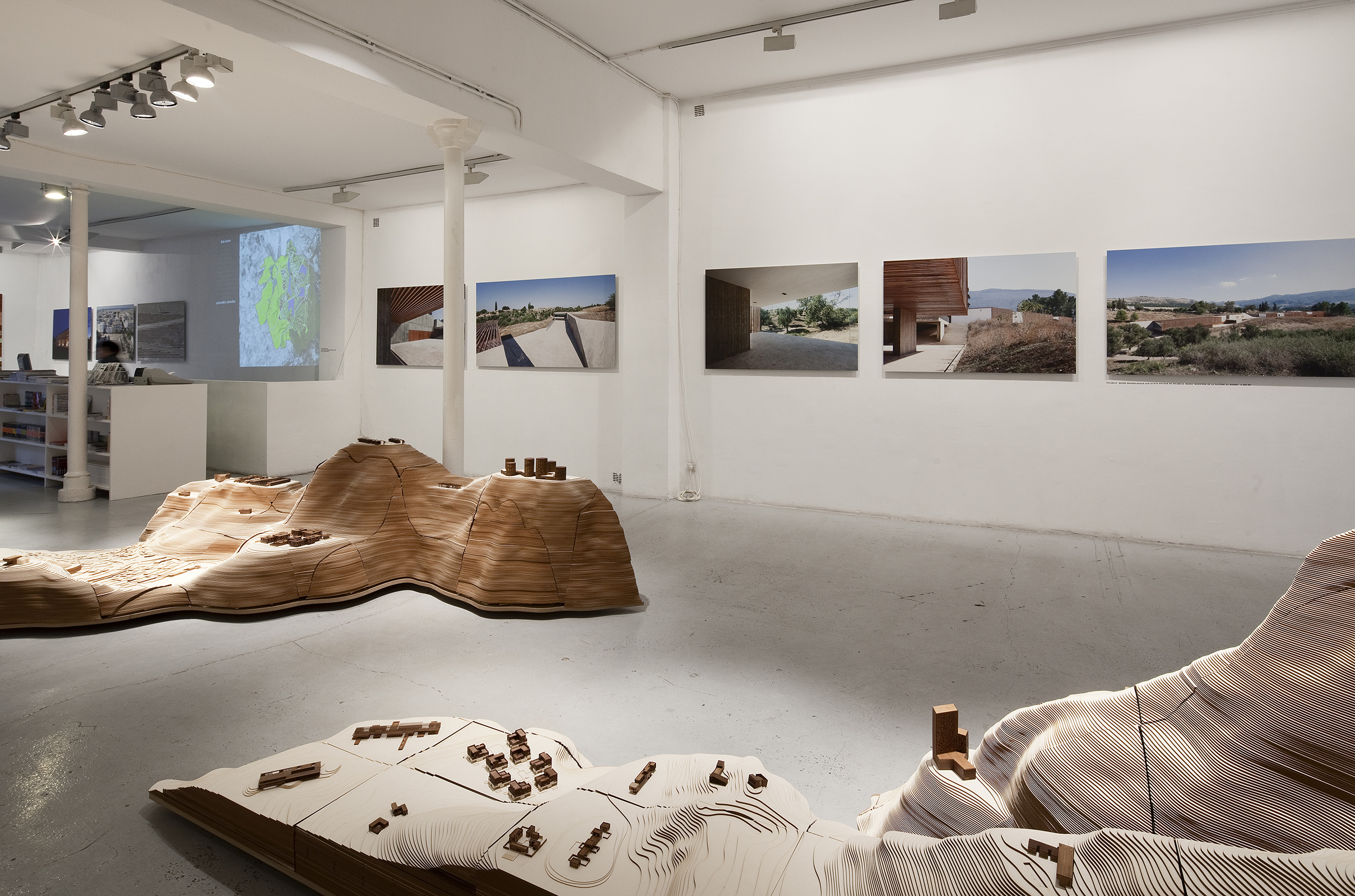Upon an imaginary topography that collapses time and geography, OUALALOU+CHOI presents more than 40 of its projects, from the house to the city, all presented at the same scale on a continuous landscape. This confrontation of radically dissimilar projects underscores the constant exploration of scales and territorial structures which lies at the core of the office’s work. This remarkable diversity of sites, situations, and programs identifies new modes of intervention. To question, to per vert and to contort the scales of a project thus becomes a modus operandi. The work is a form of resistance to the standardization of our everyday environments. The search for singularity is not a search for formal distinction or a fetishism of the architectural object, but instead the desire to inscribe oneself into a continuous territorial structure.