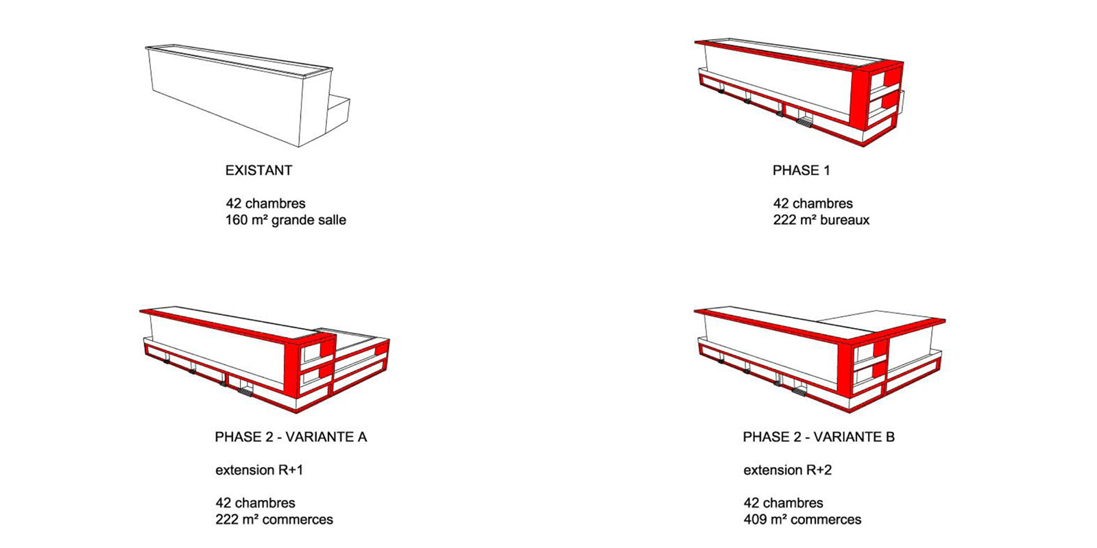 Site : Ruaudin, France Client : SCI Le Castelet Program : Study for the rehabilitation of a 2 stars Hotel Size : 2 400 m2 Cost : 780 000 € 2007