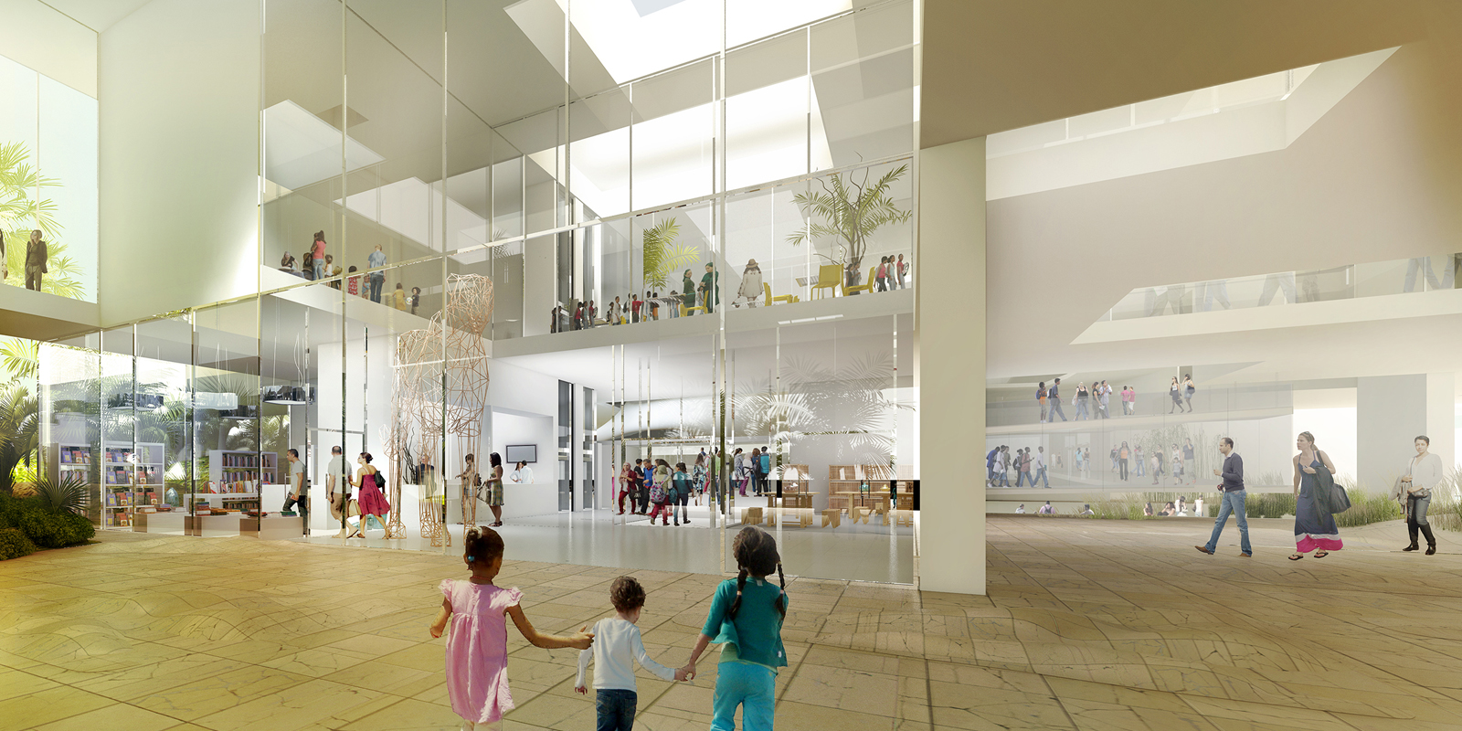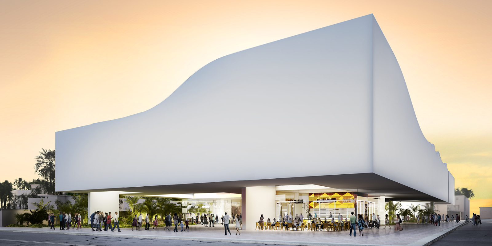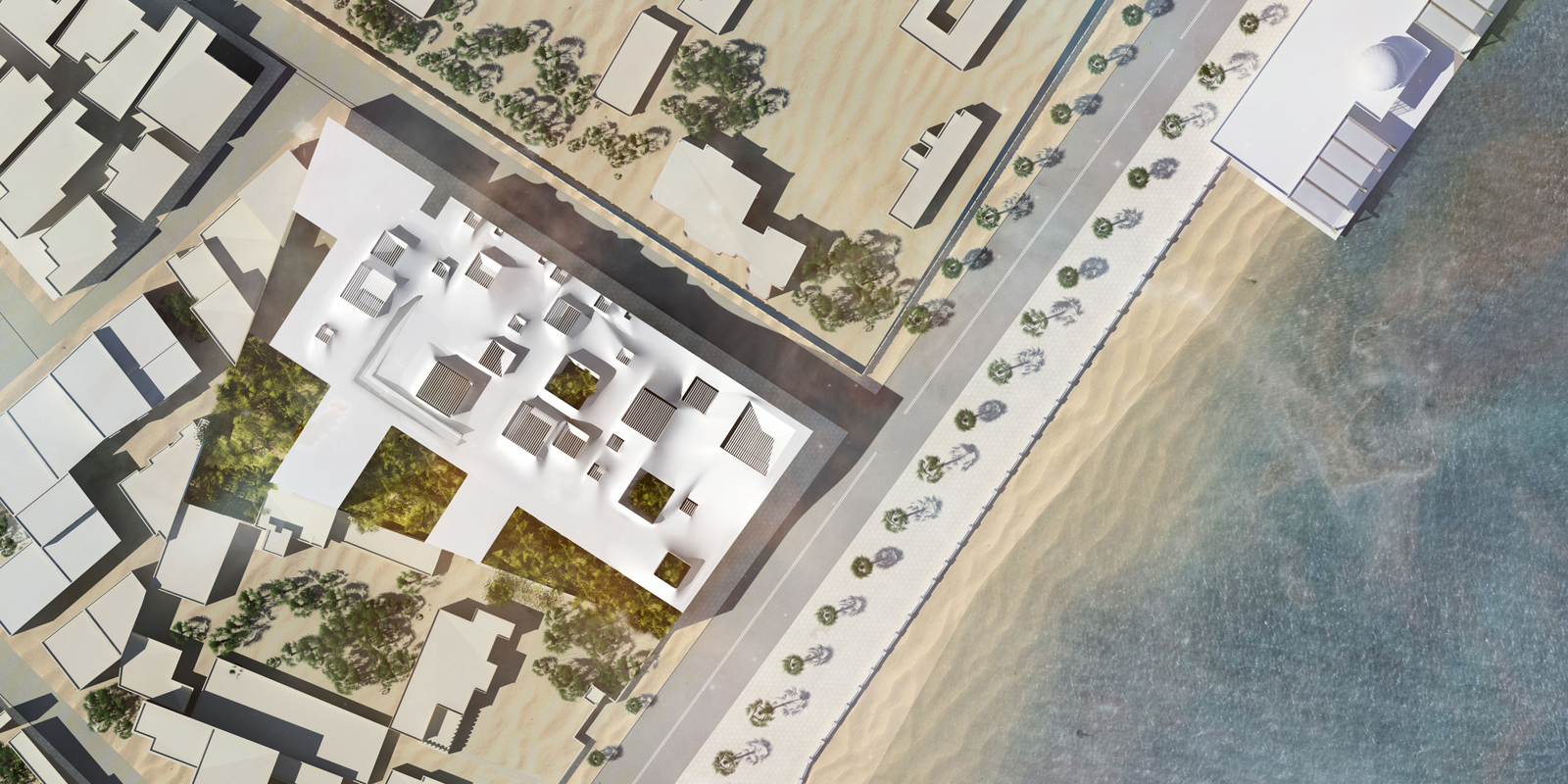 Sur un site stratégiquement placé, entre mer et centre urbain, le musée a été conçu pour être le premier espace public de la ville. Entourée par deux strates d’espaces déambulatoires, la structure blanche et suspendue invite l’espace public dans l’espace commun. Le paysage accompagne le regard et tisse une continuité jusqu’au bout de l’îlot. Le musée est traversé jusqu’à sa toiture, qui est rendue accessible, faisant du bâtiment une expérience de circulation entre sol et ciel. Un perpétuel mouvement qui, à la manière des cultures du sud, est en mobilité constante. L’espace muséal est libre, transparent, ponctué de généreuses ouvertures zénithales inondant de lumière les plateaux d’exposition élevés à différents niveaux. Les étages s’ouvrent sur la mer, rythmant le contenu, tandis que le sol ancre le programme dans la ville et ses espaces publics.
