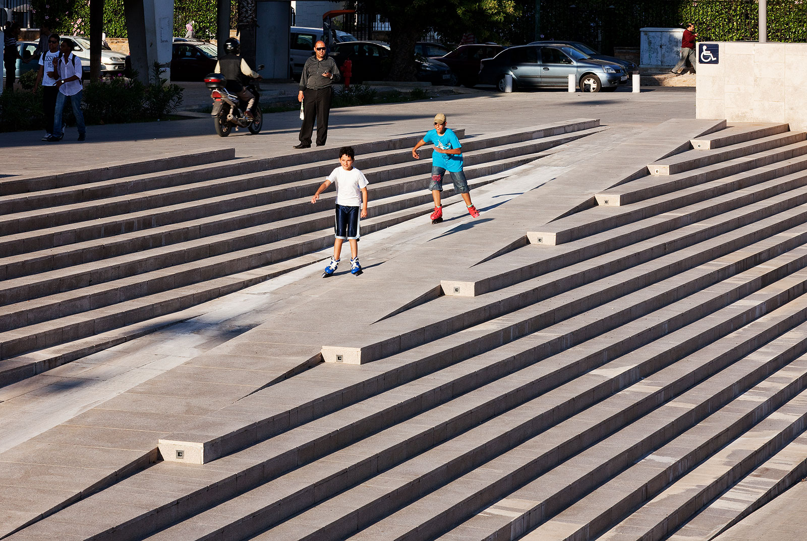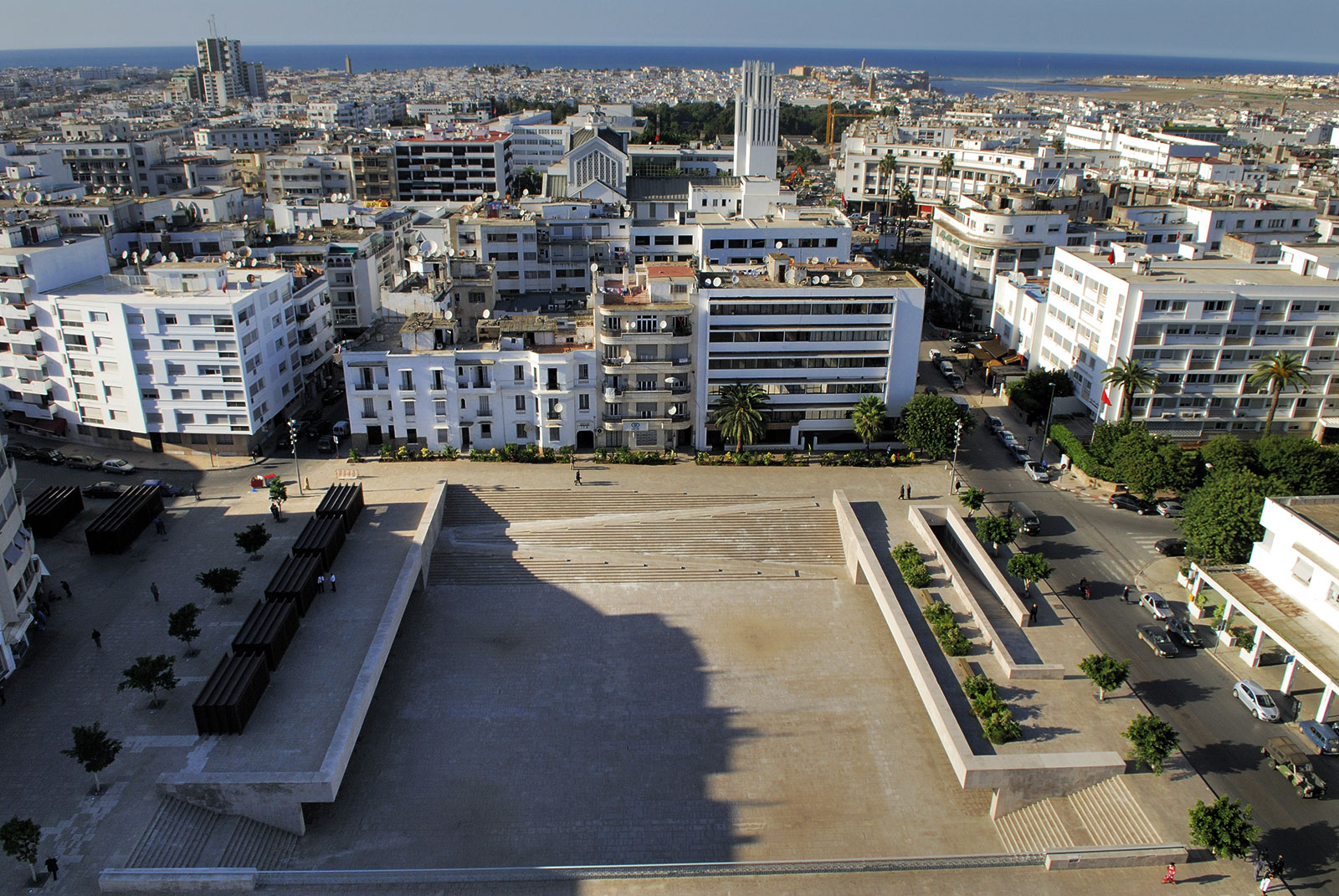 Situated in the heart of Morocco’s capital city of Rabat, the plaza creates a dynamic new public gathering space which encourages both planned and spontaneous urban and cultural events. Previously, the plaza consisted of the residual space between four vehicular roads. By sinking the core of the plaza and re-attaching two sides of the plaza to pedestrian thoroughfares, we created an urban ‘living room’ which shelters public activity from the busy streets. The primary entry to the plaza consists of an integrated ramp structure which gives the plaza the quality of an outdoor auditorium. The materiality and tectonics of the plaza are intentionally mute, and the use of local granite reinforces the illusion that the project is carved out of the landscape; the building is not ‘added,’ but rather ‘subtracted’ from its site.