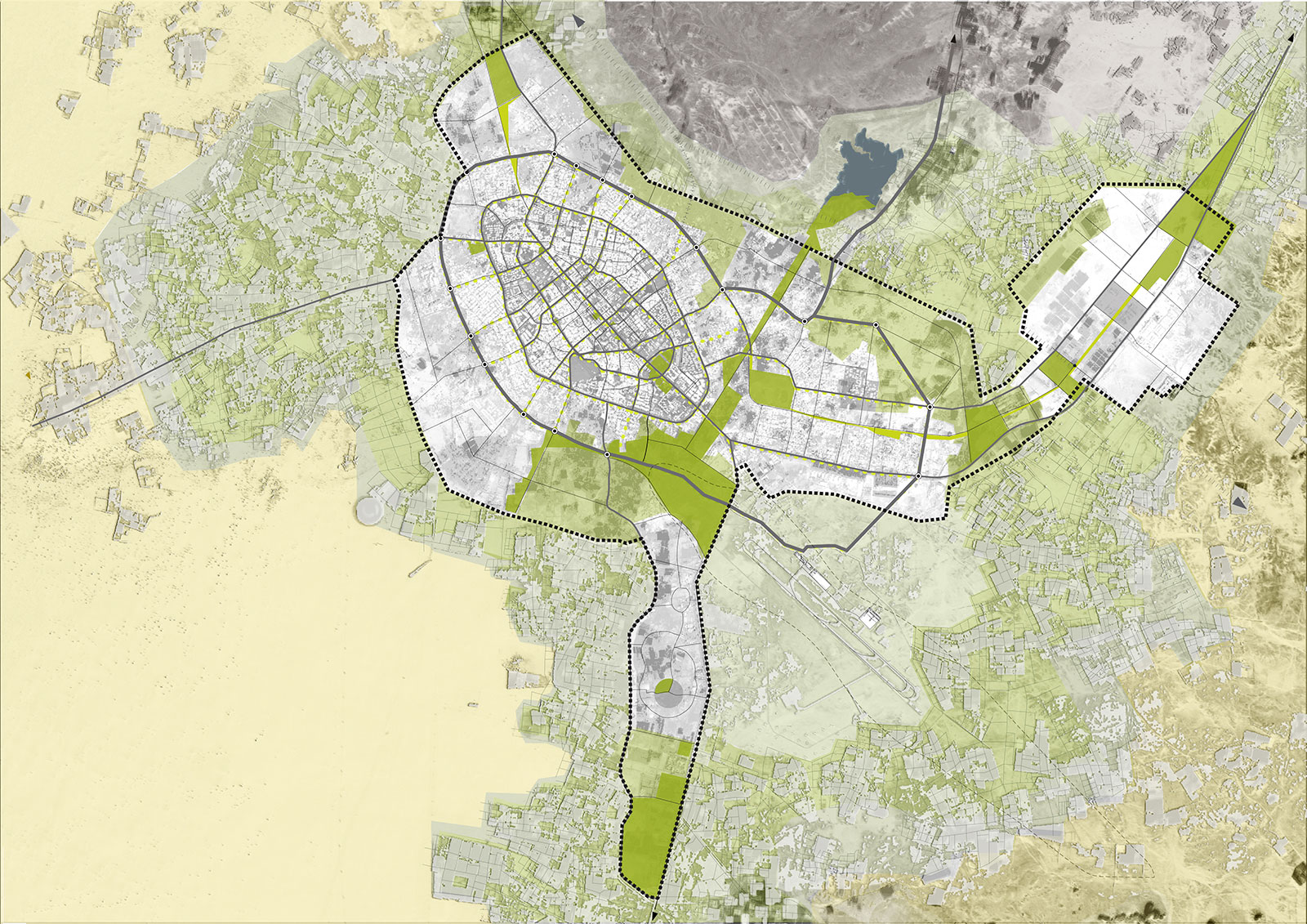 Ce projet s’inscrit dans le cadre de la coopération entre état libyen et français, pour la réalisation du Schéma Directeur d’Aménagement Urbain de l’ensemble des structures urbaines libyennes. Capitale du Fezzan, la ville de Sabha est au cœur du programme de développement régional et du grand projet de métropolisation. Le SDAU de Sabha propose une croissance exponentielle de la cité de concert avec la programmation de la disparition des villes environ Nantes, délaissées de leurs habitants. Cet exercice de planification de la croissance et de programmation de l’obsolescence des territoires construits a poussé aux limites les outils de l’urbanisme. Cette réflexion autour de la recentralisation du territoire s’est opérée avec pour principal objectif de gérer les ressources en eau, élément unique garantissant la durabilité des structures urbaines.