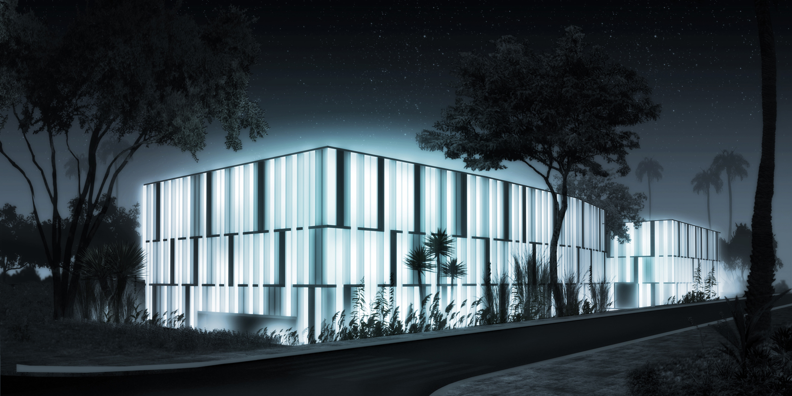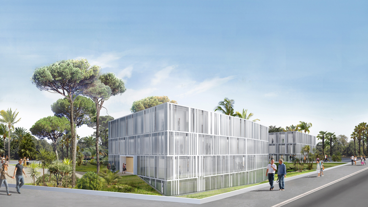 Inscrit dans un quartier résidentiel en pleine mutation, ce projet cherche à maintenir une échelle quasi domestique en partageant le programme en deux bâtiments qui se mettent en tension. A cette recherche d’une inscription, s’associe une nécessité de rupture de l’échelle architecturale. Avec un effacement obsessionnel des codes tectoniques, le projet développe une présence d’une abstraction quasi violente dans un environnement architectural convenu, hiérarchisé et policé. Cette présence presque têtue change sans le faire vriller le rapport à la rue et permet un nouvel ancrage urbain. La double épaisseur de la façade et du bâtiment qui autorise ce travail sur l’échelle architecturale et urbaine est l’occasion de mettre en place des dispositifs de ventilations passives de la façade très performants qui réduisent fortement les besoins énergétiques.