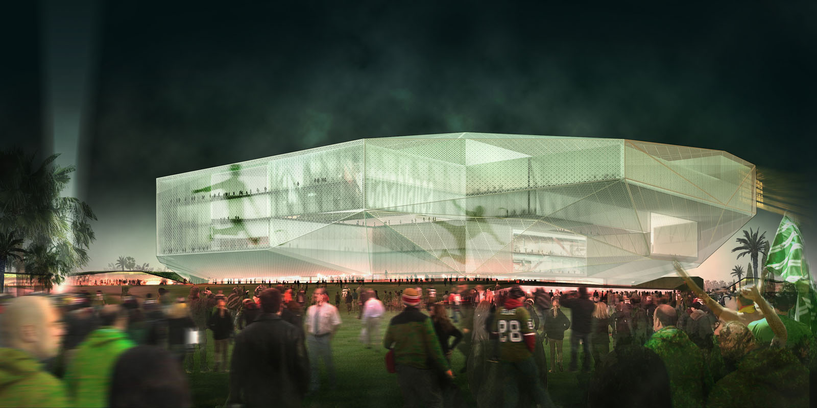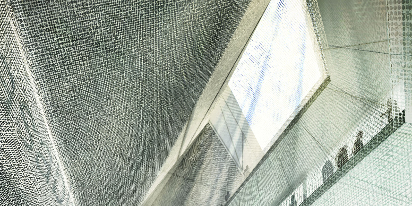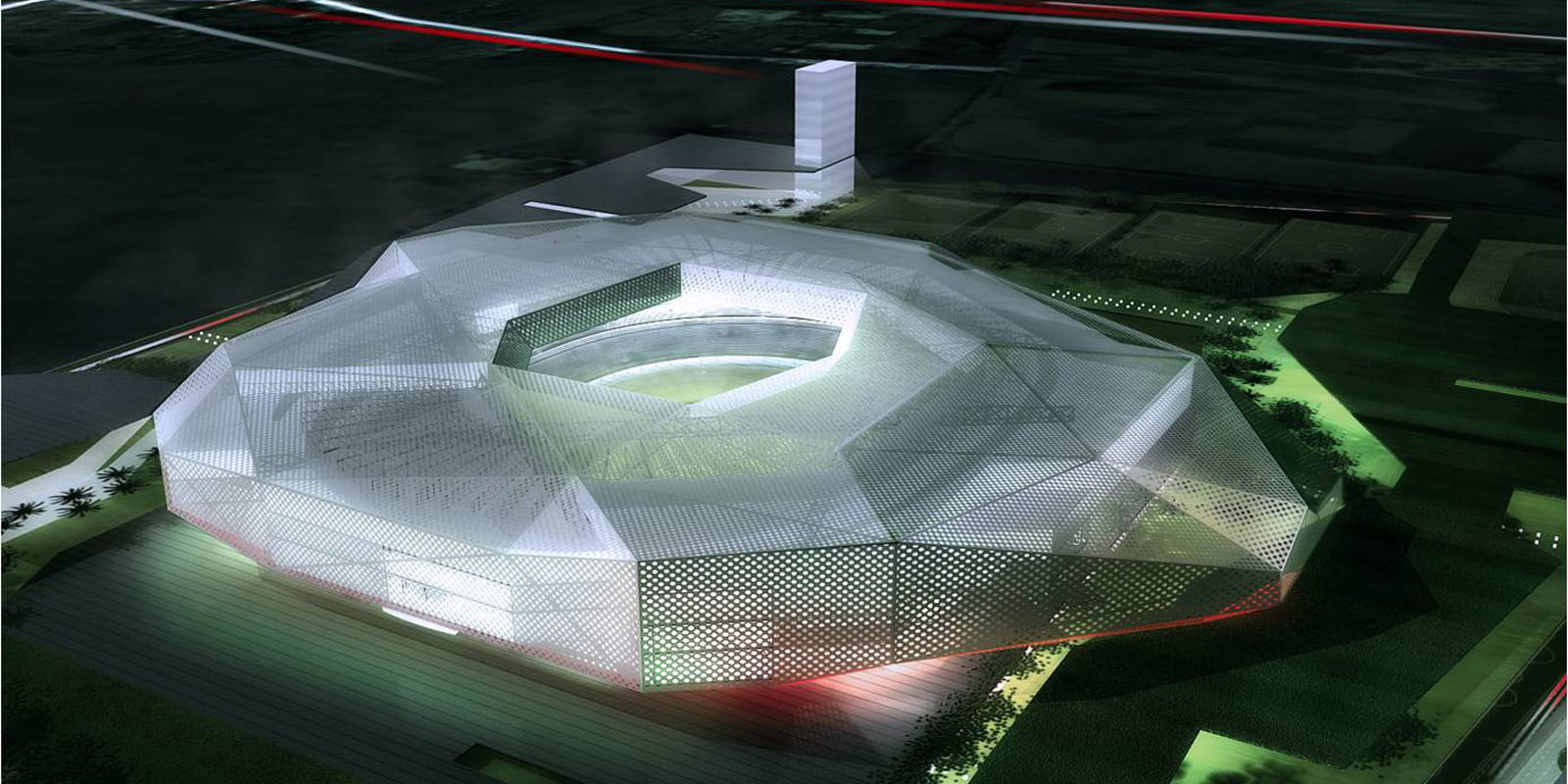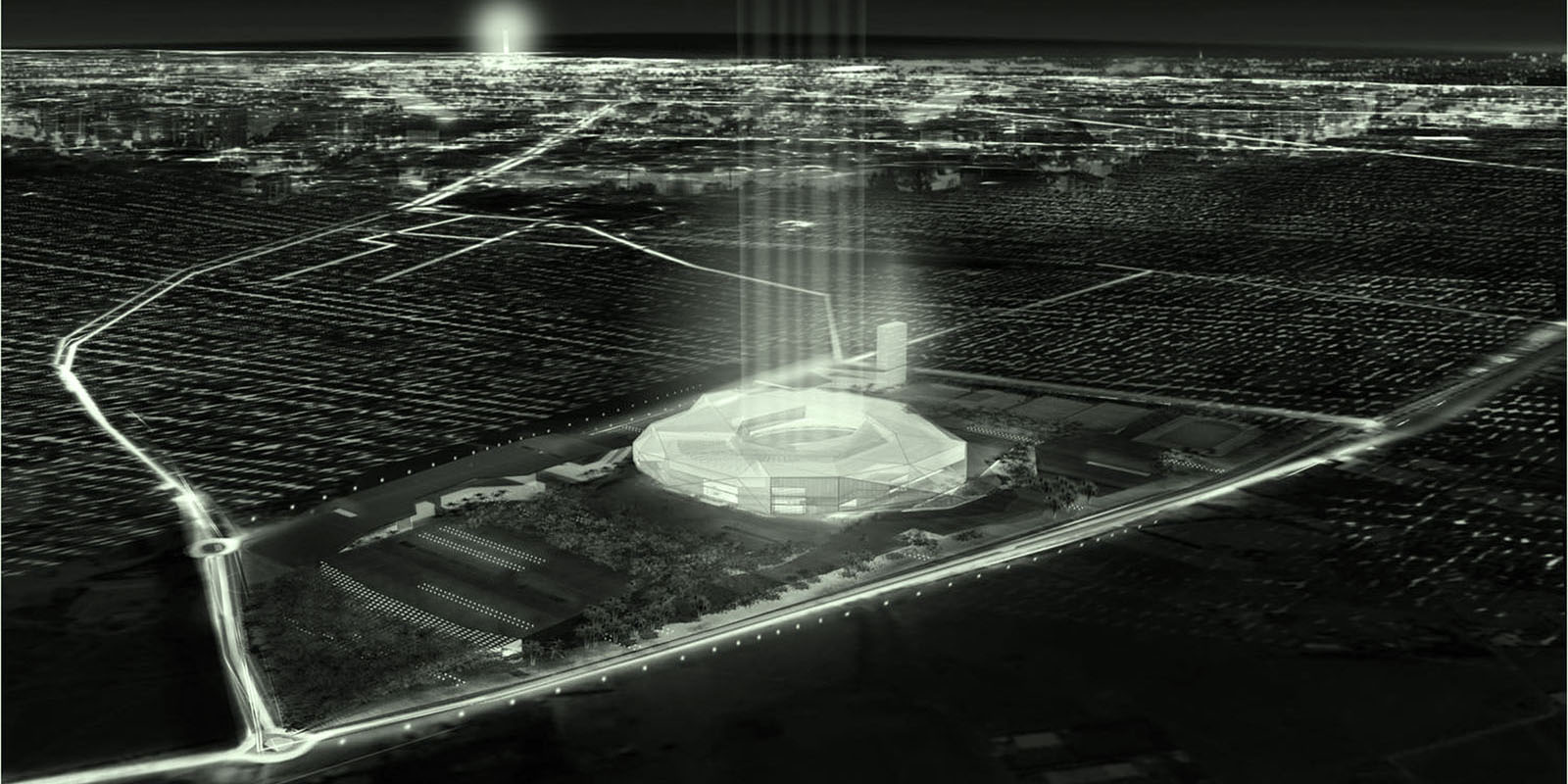Inspired by Moroccan traditions and typologies, the Grand Stadium is conceived of as a tent in the landscape, a place of gathering, celebration, and conviviality. The tent wraps itself around the mass of the stadium, conceived of as a solid object from which the seating bowl as well as all the interior spaces are carved. The tent deploys itself in different ways around the mass of the stadium: covering and sheltering the interior seating bowl, filtering light into interstitial circulation spaces, extending out to cover an exterior public amphitheatre, unfolding to act as a screen for projected imagery, etc. With its passive and active environmental strategies inherent in the built forms, the project represents an innovative example of what a responsible and sensitive world-class stadium could become.