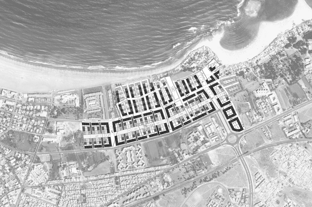 The town of Mohammedia is located 25 km from Casablanca along the Atlantic coast. The 100-hectare site presents an opportunity to create a new neighborhood with high-quality green space and an active streetscape. The project consists of 3000 housing units in three different zones—waterfront, parkside, and large parcels—each with its own unique lifestyle. The waterfront parcels maximize views from each apartment while facilitating access to the ocean for both cars and pedestrians. A network of footpaths, surrounded by ground-floor commerce and generous green space, draw the activity of the beach into the heart of the new neighborhood. The parkside parcels are organized around a linear green space, inverting the traditional typology of the Moroccan courtyard to create a rich urban experience. Finally, the large parcels to the south of the site are dedicated to large-scale projects such as public amenities and educational facilities. These three distinct identities bring a diversity of architecture, landscape, and public space to this new district of Mohammedia.